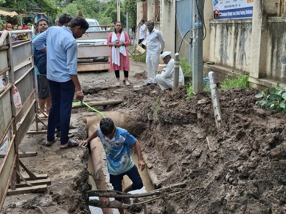 नवीन टाकण्यात आलेली लाईन मध्ये औंध उद्यानाजवळ गळती होत असल्याने होऊन देतील सामाजिक कार्यकर्ते अरविंद पाटील यांनी दुरुस्तीसाठी पाठपुरावा केला होता. त्यामुळे औंध मधील गेले अनेक महिने रखडलेला पाणीपुरवठ्याचा प्रश्न सुटण्यास मदत होणार आहे.