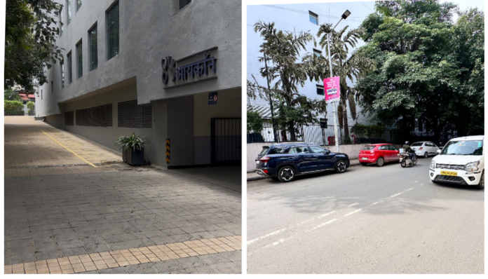 व्यापारी संकुल असलेल्या 45 आयकन या खाजगी इमारतीमधील पार्किंग रिकामी असताना या परिसरातील कर्मचारी रस्त्यांवर वाहने लावत असल्यामुळे नागरिक त्रस्त झाले आहेत. याबाबत वारंवार तक्रार करून देखील कारवाई होत नसल्याने 45 आयकॉन मधील पार्किंग मध्ये पासपोर्ट कार्यालयासमोरील वाहने लावण्यात यावीत तसेच वाहतुकीला अडथळा ठरणाऱ्या वाहनांवर कारवाई करण्यात यावी अशी मागणी केली जात आहे.
