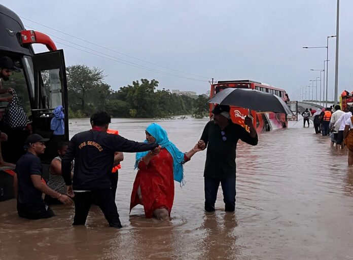 – अहिल्यानगर महानगरपालिका व जिल्हास्तरीय शोध व बचाव पथक यांनी सारोळा बद्दी, जामखेड – पाथर्डी बायपासवर पाण्यात अडकलेल्या दोन बसेसमधील ७० जणांची सुटका केली. यामध्ये तीन महिन्याच्या बाळाचाही समावेश होता.