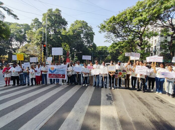 पुणे: महाराष्ट्र मानसिक आरोग्य संस्था, पुणे तर्फे जागतिक मानसिक आरोग्य दिनानिमित्त जंगली महाराज रोड येथे मानवी साखळी तसेच पथनाट्याचे आयोजन करण्यात आले होते. या उपक्रमाचा उद्देश समाजामध्ये मानसिक आरोग्याविषयी जनजागृती निर्माण करणे हा होता.