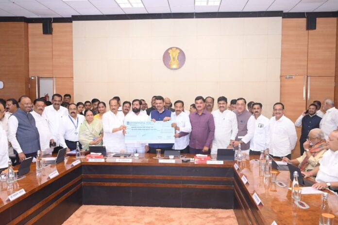 मुंबई  : उपमुख्यमंत्री (वित्त व नियोजन) मा. अजितदादा पवार यांच्या नेतृत्वाखाली पुणे जिल्हा मध्यवर्ती सहकारी बँकेच्या वतीने आपत्तीग्रस्तांना मदत म्हणून मुख्यमंत्री सहाय्यता निधीसाठी १ कोटी २६ लाख ५१ हजार रुपयांचा धनादेश मुख्यमंत्री देवेंद्र फडणवीस यांच्याकडे मंत्रालय येथे सुपूर्त करण्यात आला. बँकेच्या वतीने १ कोटी, कर्मचाऱ्यांचा एक दिवसाचा पगार २५ लाख ५१ हजार रुपये आणि संचालक मंडळाचा सभाभत्ता १ लाख रुपये असे एकूण १ कोटी २६ लाख ५१ हजार रुपयांची रक्कम मुख्यमंत्री सहाय्यता निधीसाठी मदत म्हणून देण्यात आली आहे.