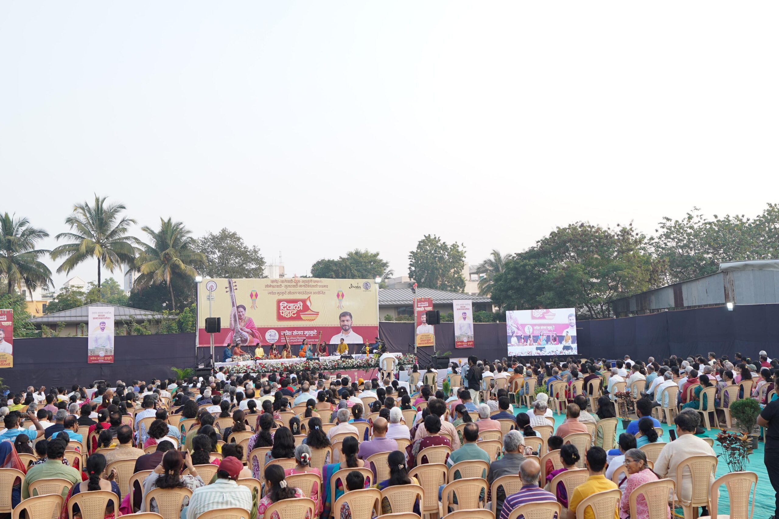 कार्यक्रमात प्रख्यात शास्त्रीय गायिका विदुषी आरती अंकलीकर-टिकेकर आणि त्यांच्या सहकाऱ्यांनी सादर केलेल्या मधुर स्वरांनी पहाटेचे वातावरण सुरांनी भारले. त्यांच्या गायनाने उपस्थित रसिकांना संगीताच्या एका अद्भुत अनुभूतीत नेऊन ठेवले. या सुरेल कार्यक्रमाला बाणेर-बालेवाडी परिसरातील नागरिकांचा उत्स्फूर्त प्रतिसाद लाभला. संगीताच्या स्वरांनी सजलेल्या या पहाटेने सर्वांच्या मनात दिवाळीच्या आनंदात एक नवा, सुरेल रंग भरला.