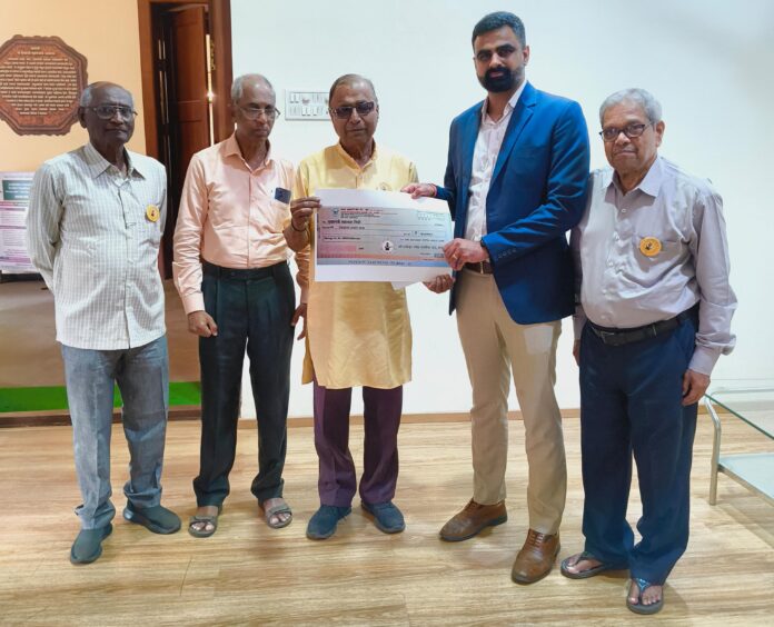 या प्रसंगी अध्यक्ष श्री हरीश भाई पाठक, उपाध्यक्ष श्री रमेश जोशी, सचिव श्री रत्नाकर मानकर, खजिनदार श्री गोपाळ निजसुरे हजर होते.जिल्हाधिकाऱ्यांकडे चेक सुपूर्त करण्यासाठी सौ कल्याणी टोकेकर यांचे विशेष सहकार्य लाभले.
