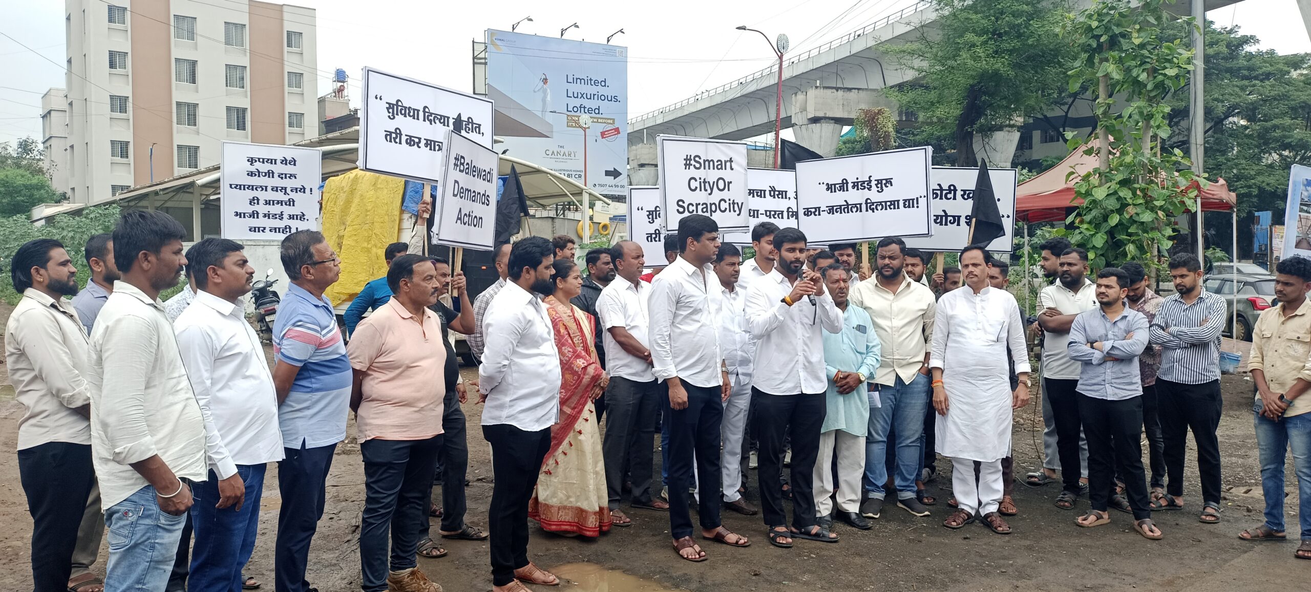 बालेवाडी : राष्ट्रवादी काँग्रेस पार्टी शरद पवार पक्ष व कोथरूड मतदार संघ कार्याध्यक्ष जयेश मुरकुटे यांच्या वतीने स्मार्ट सिटी अंतर्गत बांधलेला, साई चौक, बालेवाडी येथील भाजी मार्केट सुरू करण्यासंदर्भात आंदोलन करण्यात आले.