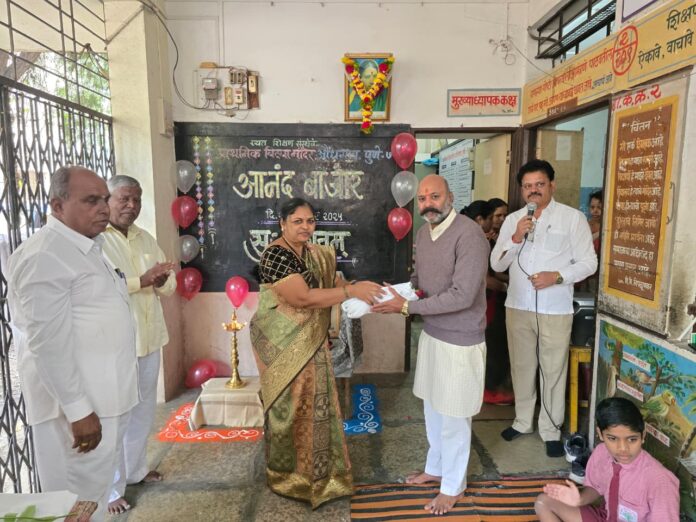 औंध : रयत शिक्षण संस्था प्राथमिक विद्यालय औंधगाव येथे आनंद बाजार ही विद्यार्थी पालक यांच्या सहभागातून विद्यार्थ्याना खरेदी विक्री चा कार्यानुभव देणारी संकल्पना मुख्याध्यापिका सौ. सुनीता गायकवाड, जालिंदर ढोरे,यांनी राबवली कार्यक्रमाचे उदघाटन कर्मवीर भाऊराव पाटील यांचे पुजन आणि दीप प्रज्वलन करून वसंत जुनवणे, गणेश कलापुरे या मान्यवरांच्या शुभ हस्ते करण्यात आले.