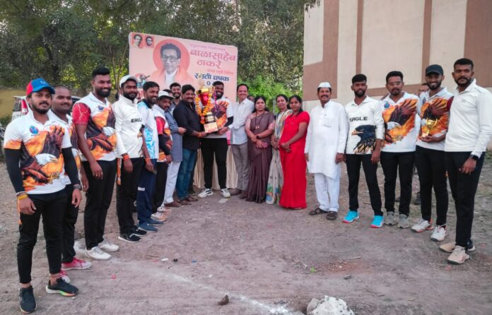 पाषाण : शिवसेना उद्धव बाळासाहेब ठाकरे पक्षाच्या प्रभाग क्रमांक नऊ च्या वतीने हिंदूहृदयसम्राट शिवसेनाप्रमुख बाळासाहेब ठाकरे स्मृती चषक क्रिकेट स्पर्धेमध्ये विजेता ईगल वॉरियर तर उपविजेता स्काय इलेव्हन ठरले.