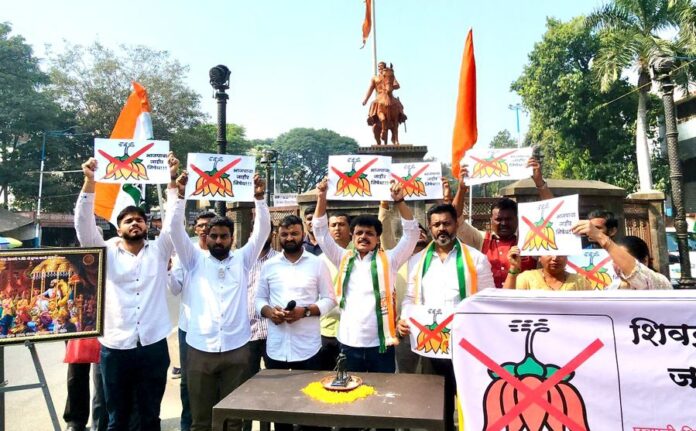 कोथरूड : भंडारा जिल्ह्यात प्रचारा दरम्यान भाजप पदाधिकार्यां मार्फत महाराष्ट्राचे आराध्य दैवत छत्रपती शिवाजी महाराज यांच्या पुतळ्याला भाजपची टोपी आणि गमछा घालून अवमान करण्यात आला, व सातत्याने भाजप छत्रपती शिवाजी महाराजांचा अपमान करीत आहे.याच्या निषेधार्थ कोथरूड विधानसभा युवक कॉंग्रेस तर्फे छत्रपती शिवाजी महाराज स्मारक चौक, कोथरूड गावठाण, कोथरूड येथे तीव्र निषेध करण्यात आला.