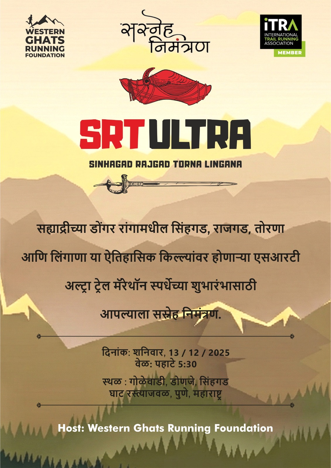 एसआरटीएल अल्ट्रा मॅरेथॉन ही सिंहगड-राजगड-तोरणा-लिंगाणा किल्ल्यांना जोडणारी प्राचीन मार्गाची एक रोमांचकारी मॅरेथॉन आहे. स्पर्धेत गोळेवाडी (डोणजे) ते सिंहगड ११ किमी, डोणजे-सिंहगड ते राजगड २५ किमी, डोणजे-तोरणा ५३ किमी आणि डोणजे ते लिंगाणा १०० किमी अशा चार अंतर श्रेणीमध्ये ही स्पर्धा आहे. वेस्टर्न घाट रनिंग फाउंडेशन हे इंटरनॅशनल ट्रेल रनिंग असोसियेशनची सदस्य आहे. एसआरटी अल्ट्रा ही स्पर्धा वेळेत पुर्ण करणारया स्पर्धकांना फ्रांस मधील UTMB पात्रतेसाठी अवश्यक गूण मिळतात.
