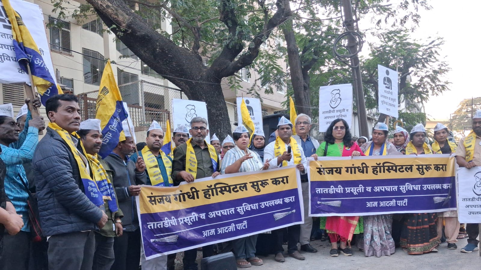 पुणे: बोपोडी येथील संजय गांधी हॉस्पिटल नव्याने बांधले गेले. ते पूर्ण तयार असूनही सुरू झालेले नाही. याबाबत आम आदमी पार्टी तर्फे अनेकदा पाठपुरावा करूनही अजून ते सुरू न झाल्यामुळे काल बोपोडी येथे हॉस्पिटलजवळ स्थानिक महिला व पक्षातर्फे तीव्र आंदोलन करण्यात आले.