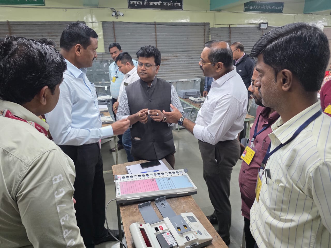 यावेळी मतदान यंत्रांची पाहणी, स्ट्रॉंग रूमची पाहणी, मतमोजणी केंद्राची पाहणी तसेच निवडणूक कामकाजाचा सविस्तर आढावा घेण्यात आला. यामध्ये मतदान यंत्रांची सुरक्षितता, स्ट्रॉंग रूम मधील संरक्षक व्यवस्था, सीसीटीव्ही निगराणी, अग्निशमन सुविधांची उपलब्धता तपासणी, तसेच मतमोजणी केंद्रातील आवश्यक सुविधांची पाहणी करण्यात आली. यावेळी मतदान यंत्रांची पाहणी करून तंत्रज्ञ यांच्याशी संवाद साधला.
