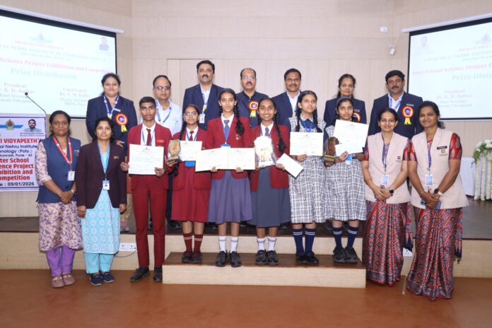 पुणे : भारती विद्यापीठाच्या जवाहरलाल नेहरू तंत्रनिकेतनमध्ये आंतरशालेय विज्ञान प्रकल्प स्पर्धेचे आयोजन करण्यात आले होते. प्रदर्शनाचे उदघाटन भारती विद्यापीठ मेडिकल फाउंडेशन च्या कार्यकारी संचालिका मा. डॉ. अस्मिताताई कदम ह्यांच्या हस्ते करण्यात आले, मुलांना मार्गदर्शन करताना “आजच्या युगात विज्ञानाचे महत्त्व अनन्यसाधारण आहे. विद्यार्थ्यांनी केवळ पुस्तकी ज्ञान न घेता प्रयोगातून शिकावे, पुस्तकी ज्ञानासोबतच अशा स्पर्धांमुळे मुलांच्या कल्पनाशक्तीला वाव मिळतो” असे नमूद केले. स्पर्धेच्या पारितोषिक वितरण समारंभामध्ये बोलताना कार्यक्रमाचे अध्यक्ष भारती विद्यापीठाचे सहकार्यवाह मा. डॉ. के. डी. जाधव यांनी स्पर्धेत जिंकण्यापेक्षा सहभाग घेणे आणि आपले विचार मांडणे हे जास्त महत्त्वाचे आहे, आज मांडलेला छोटासा प्रकल्प भविष्यात मोठे संशोधन ठरू शकतो असे नमूद केले व असे उपक्रम सातत्याने आयोजित करणे गरजेचे आहेत, असे मत मांडले.”