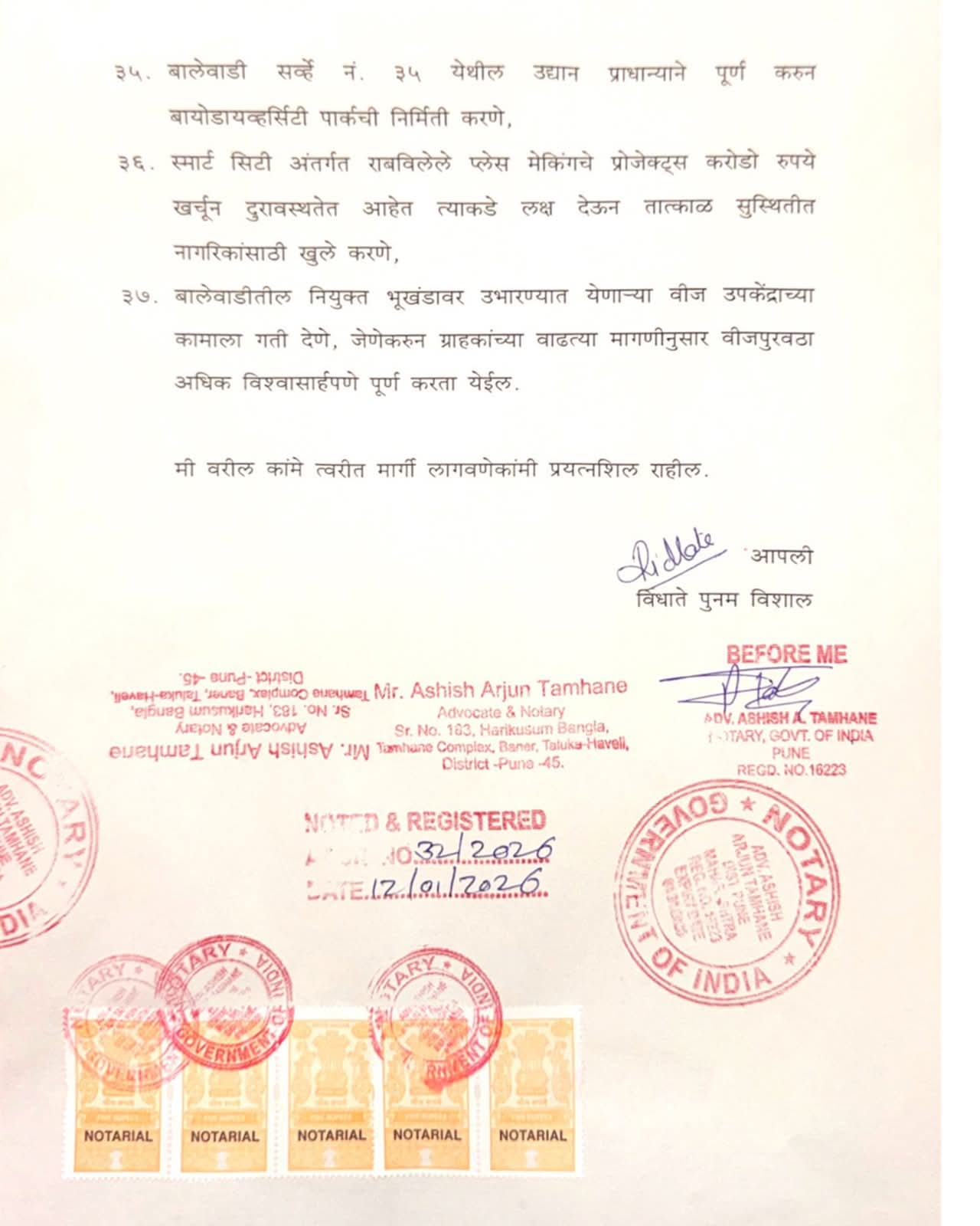 नागरिकांनीही या उपक्रमाचे स्वागत करत, लोकप्रतिनिधींनी केवळ घोषणा न करता लेखी बांधिलकी स्वीकारणे ही सकारात्मक आणि आशादायी बाब असल्याची प्रतिक्रिया व्यक्त केली.