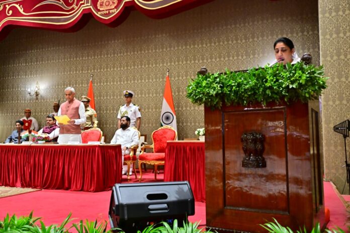 मुंबई, दि. ३१ : महाराष्ट्राचे राज्यपाल आचार्य देवव्रत यांनी आज सुनेत्रा अजित पवार यांना उपमुख्यमंत्री पदाची आणि गोपनीयतेची शपथ दिली.