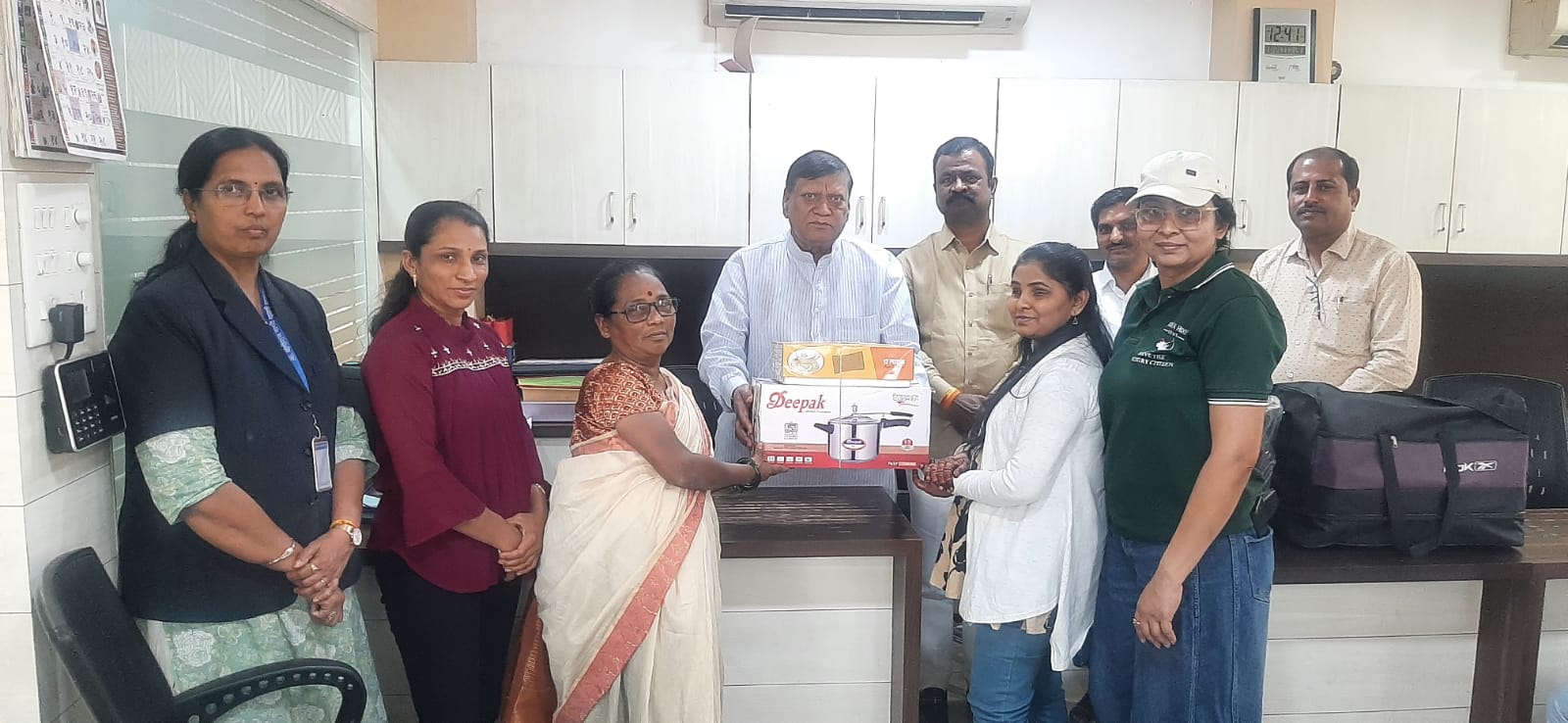 बाणेर : योगीराज पतसंस्थेच्या वतीने मोनाली नायकरे या पदवी प्राप्त अंध मुलीच्या लग्नासाठी योगीराज कन्यारत्न विवाह मदत योजने अंतर्गत संपूर्ण भांड्यांचा संसार संस्थेचे संस्थापक अध्यक्ष ज्ञानेश्वर तापकीर, उपाध्यक्ष राजेश विधाते व उद्योजक संतोष डफळ यांच्या शुभहस्ते भेट देण्यात आला.