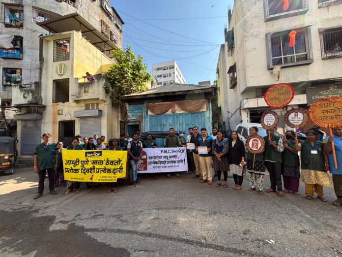 पुणे : पुणे महानगरपालिका अंतर्गत भवानी पेठ क्षेत्रीय कार्यालयाच्या वतीने प्रभाग क्रमांक २६ मधील गुरुवार पेठ आरोग्य कोठी परिसरात आज जनजागृती रॅलीचे आयोजन करण्यात आले. परिसरातील स्वच्छता आणि कचरा व्यवस्थापनाबाबत नागरिकांमध्ये जागरूकता निर्माण करण्यासाठी ही रॅली काढण्यात आली.
