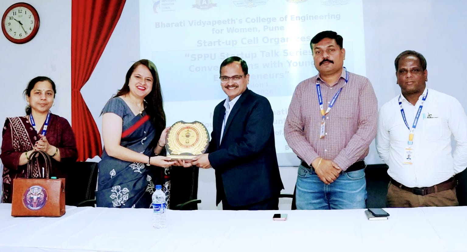 पुणे : भारती विद्यापीठाचे महिला अभियांत्रिकी महाविद्यालय, पुणे यांच्या वतीने तसेच सावित्रीबाई फुले पुणे विद्यापीठाच्या नवोन्मेष, संवर्धन व उद्योग-संलग्नता केंद्राच्या सहकार्याने आयोजित ‘उद्योजकता संवादमाले’ची दोन्ही सत्रे उत्साहात पार पडली. विद्यार्थ्यांमध्ये नवसंकल्पना, उद्योगाभिमुख दृष्टी आणि स्वावलंबी विचारसरणी विकसित करणे हा या उपक्रमाचा मुख्य हेतू होता.पहिल्या सत्रासाठी ड्रीमहंट इंडिया यांच्या सहसंस्थापक कु. मनीषा भाटी प्रमुख वक्त्या म्हणून उपस्थित होत्या. त्यांनी आपल्या उद्योजकीय प्रवासातील अनुभव कथन करताना कल्पनेपासून यशस्वी उद्योग उभारण्यापर्यंतचा प्रवास, त्यातील अडथळे, चिकाटी आणि आत्मविश्वास यांचे महत्त्व अधोरेखित केले.