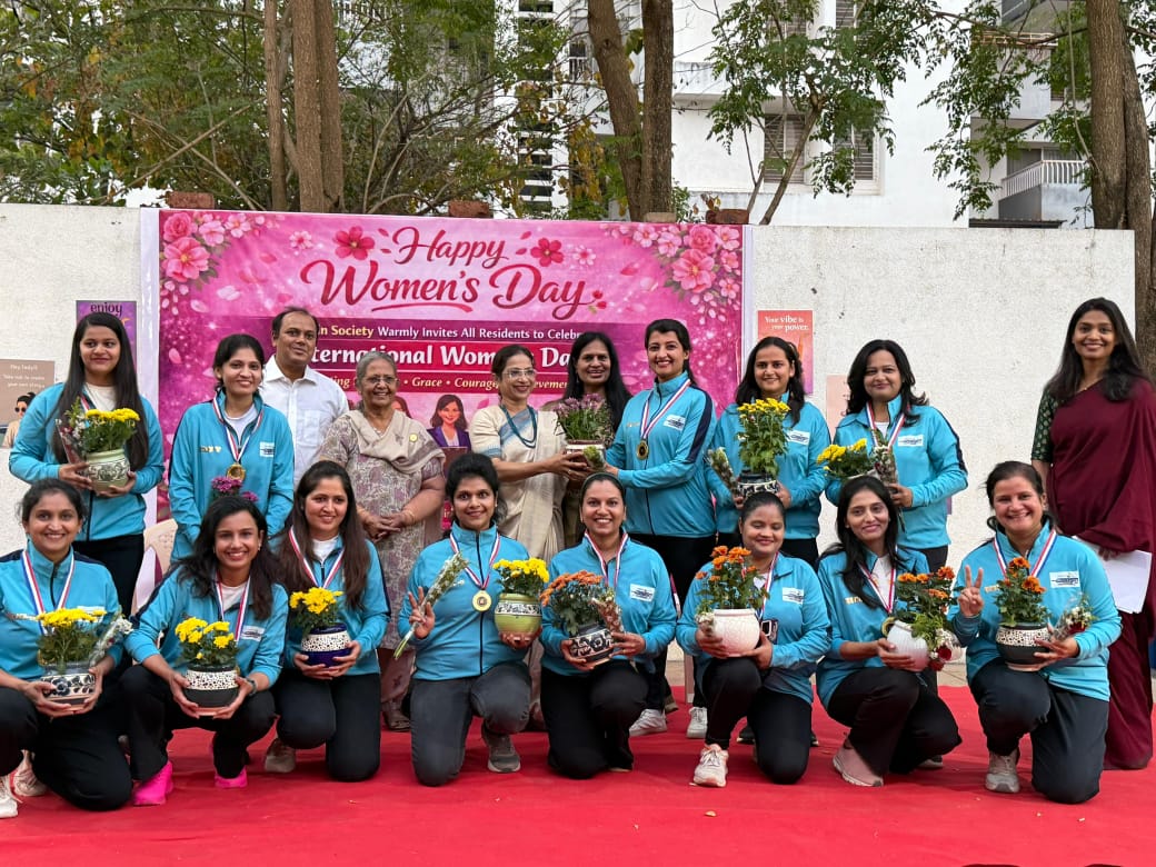 पुणे : यशविन सोसायटीमध्ये ७ मार्च रोजी आंतरराष्ट्रीय महिला दिन मोठ्या उत्साहात साजरा करण्यात आला. या कार्यक्रमासाठी श्यामला देसाई (अध्यक्ष – नॅशनल सोसायटी फॉर क्लीन सिटी, अध्यक्षा – PMC Apex कमिटी) या प्रमुख पाहुण्या म्हणून उपस्थित होत्या, तर माधवी शिंदे (संचालक – MNVTI, कर्वे संस्था) या विशेष पाहुण्या म्हणून उपस्थित होत्या.