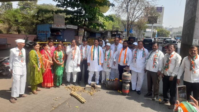 पुणे : इराण इस्रायल अमेरिका यांच्यातील युद्धमुळे  देशात गॅस टंचाई निर्माण झाली आहे. अपुऱ्या गॅस पुरवठ्याने केंद्र सरकारने एलपीजी गॅस सिलिंडरच्या किमतीत केलेल्या भरघोस वाढीमुळे सर्वसामान्य जनतेचे कंबरडे मोडले असून, या दरवाढीच्या निषेधार्थ पुणे जिल्हा काँग्रेस कमिटीच्या वतीने आज सकाळी सिंहगड रस्त्यावरील वीर बाजी पासलकर चौक येथे निषेध आंदोलन केले. रस्त्यावरच चुली पेटवून सरकारने गॅस चे दर वाढवण्याचा निषेध व्यक्त केला.