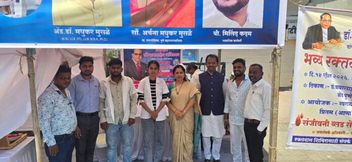 औंध : ॲड.डॉ.मधुकर मुसळे व मा नगरसेविका सौ अर्चना मधुकर मुसळे यांच्या तर्फे डॉ. बाबासाहेब आंबेडकर यांच्या 135 व्या जयंतीनिमित्त औंध येथील डॉ आंबेडकरांच्या पुतळ्या शेजारी नेत्र तपासणी शिबिराचे आयोजन करण्यात आले होते. यावेळी 152 नागरिकांनी या शिबिराचा लाभ घेतला.