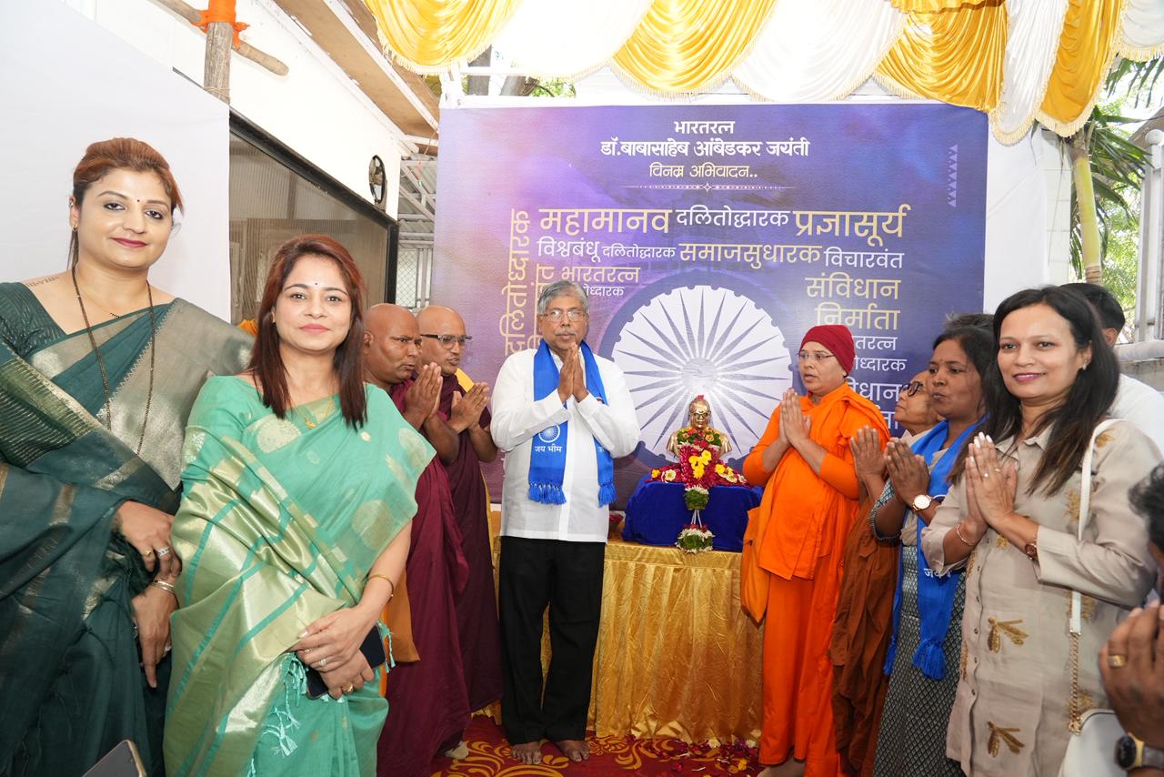 याप्रसंगी भन्ते डॉ. हरिषबोधी महाथेरो, भिक्खू हर्षवर्धन थेरो, भिक्खू आनंद मेत्ता, भिक्खूणी धम्म दर्शनी आणि भिक्खूणी महाबोधी मेत्ता यांनी उपस्थित राहून मंत्री चंद्रकांतदादा पाटील यांना आशिर्वाद दिले. ना. पाटील यांनीही भिक्खू संघाला अत्यंत श्रद्धेने ‘चिवरदान’ करून आपला आदर व्यक्त केला. यानंतर उपस्थित सर्व भन्ते आणि भिक्खूंनी सर्व अनुयायांना तसेच नागरिकांना डॉ. बाबासाहेब आंबेडकर यांच्या जयंतीनिमित्त मंगलमय शुभेच्छा दिल्या.”