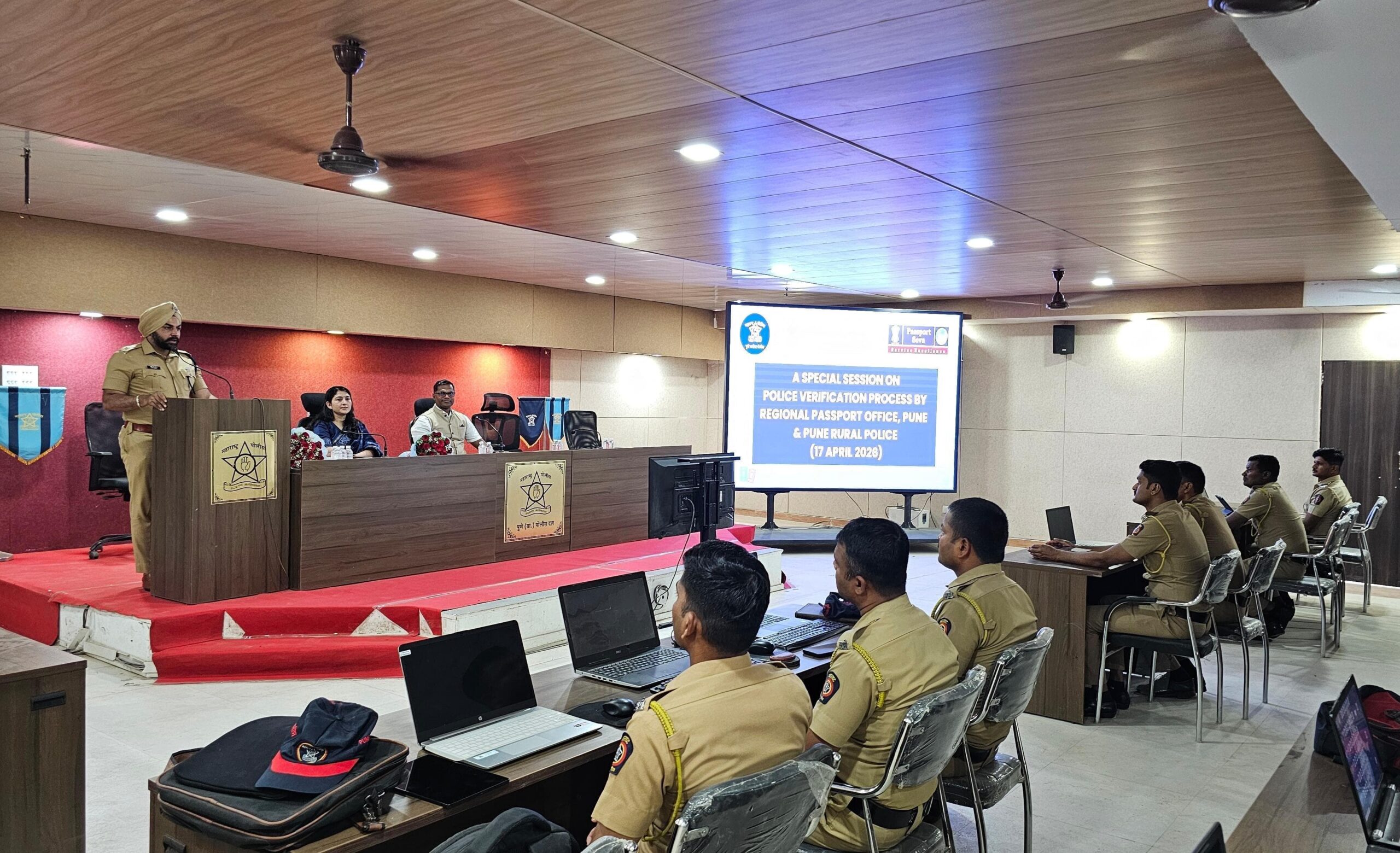 या प्रशिक्षण सत्राची सुरुवात पुणे ग्रामीणचे पोलीस अधीक्षक संदीप सिंह गिल्ल (भा.पो.से.) यांच्या स्वागतपर भाषणाने झाली. आपल्या भाषणात त्यांनी पासपोर्ट पडताळणी प्रक्रियेतील अचूकता आणि वेळेचे महत्त्व अधोरेखित केले. या सत्रात पोलीस अधिकाऱ्यांना पासपोर्ट पडताळणीची संपूर्ण प्रक्रिया, अलीकडील तांत्रिक सुधारणा तसेच वेळेत व अचूक अहवाल सादर करण्याबाबत सविस्तर मार्गदर्शन करण्यात आले.