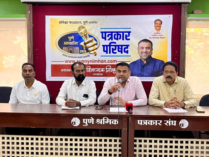 पुणे | प्रतिनिधी :शहरातील हौशी गायक कलाकारांना व्यासपीठ उपलब्ध करून देण्यासाठी सोमेश्वर फाउंडेशन, पुणे यांच्या वतीने ‘पुणे आयडॉल २०२६’ या गायन स्पर्धेचे आयोजन करण्यात आले आहे. ही स्पर्धा ४ मे (सोमवार) ते १० मे (रविवार) २०२६ या कालावधीत पार पडणार असल्याची माहिती पत्रकार परिषदेत नगरसेवक चंद्रशेखर उर्फ सनी निम्हण यांनी दिली.