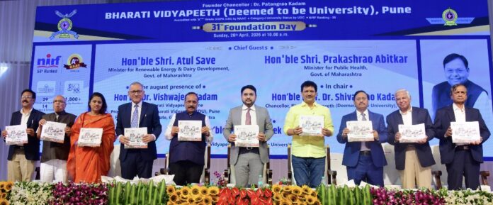 यावेळी भारती हॉस्पिटल येथील नूतनीकरण केलेल्या एकत्रित महात्मा फुले जनआरोग्य योजना व प्रधानमंत्री जनआरोग्य योजनेचे कार्यालय, अत्याधुनिक नेत्ररोग विभाग व नेत्रपेढी तसेच आय. व्ही. एफ. सेंटरचे उद्घाटन मान्यवरांच्या हस्ते करण्यात आले. यासोबतच विद्यापीठाच्या वार्षिक अहवालाचे प्रकाशनही करण्यात आले.