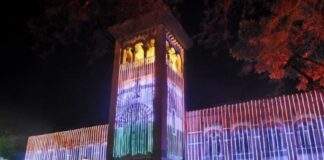 स्वातंत्र्यदिनाच्या पूर्वसंध्येला पुण्यातील विधानभवन येथे केलेली आकर्षक विद्युत रोषणाई