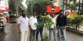 औंध मध्ये मनसेच्या वतीने खड्ड्यांमध्ये झाड लावत आंदोलन