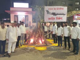 बालेवाडीत होळीमध्ये VSR कंपनीच्या विमानाचे प्रतीकात्मक दहन; चौकशीला गती देण्याची मागणी