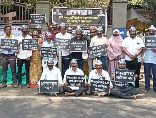 विकासकामांतील टक्केवारीप्रकरणी आम आदमी पार्टीचे पुण्यात आंदोलन