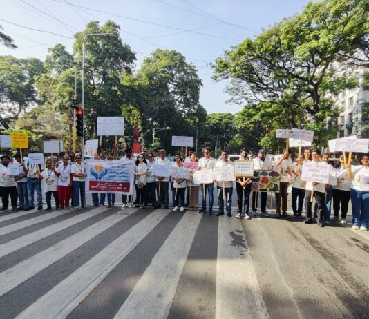 महाराष्ट्र मानसिक आरोग्य संस्थेच्या वतीने मानसिक आरोग्य जनजागृतीसाठी मानवी साखळी व पथनाट्याचे आयोजन