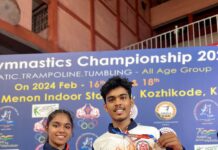 धनकवडी : जिम्नॅस्टिक्स फेडरेशन ऑफ इंडियाच्या वतीने केरळ येथील व्ही.के. कृष्ण मेनन इनडोअर स्टेडियम मध्ये नुकत्याच पार पडलेल्या टंबलिंग जिम्नॅस्टिक्स नॅशनल चॅम्पियनशिप...