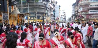 बंगाली ढाक आणि ढोल ताशाच्या गजरात रंगली माता कालीची मिरवणूक