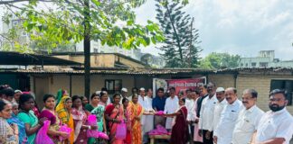 अंबाईमाता देवस्थानच्या वतीने कष्टकरी, आदिवासी महिलांना साड्यांची भाऊबीज भेट