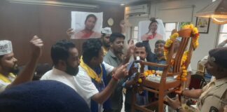 आम आदमी पक्षाच्या वतीने रस्त्यावरील खड्ड्यांविरोधात पावस्कर यांच्या कार्यालयात निदर्शने..